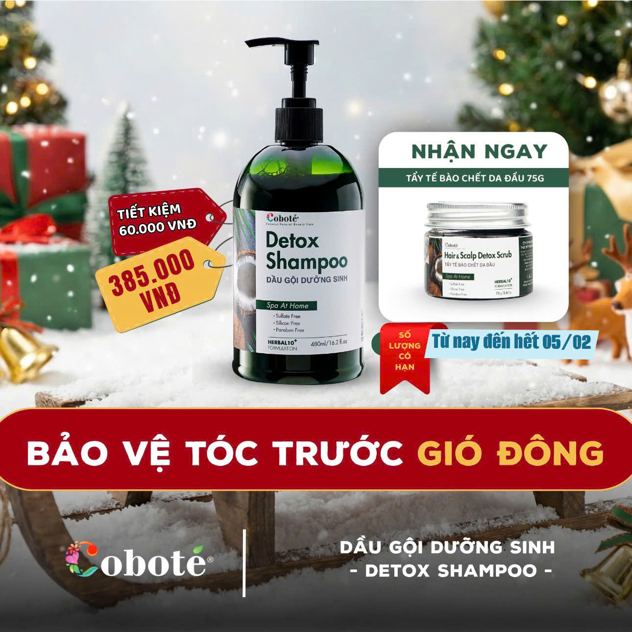 DẦU GỘI DƯỠNG SINH COBOTÉ 480ML (DETOX SHAMPOO)(TẶNG TẨY TẾ BÀO CHẾT DA ĐẦU COBOTÉ 75GR)