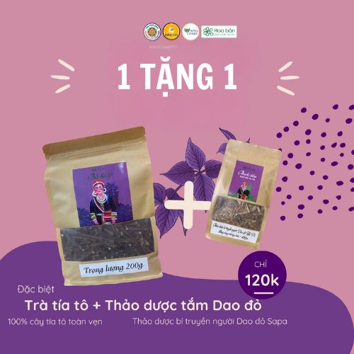 TRÀ TÍA TÔ 200G LOẠI CÂY TOÀN VẸN ( TẶNG 1 THUỐC TẮM DAO ĐỎ TÚI 100G) Kết hợp hoàn hảo giữa uống trong – tắm ngoài, giúp thanh lọc, giải cảm, thư giãn thần kinh và phục hồi năng lượng. Tất cả đều thu hái thủ công từ núi rừng Sapa, không hóa chất, không tạp chất.
