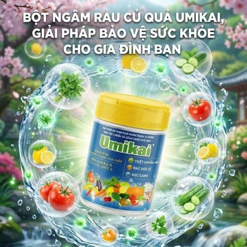 Bột rửa rau củ quả thịt cá Umikai - Công Nghệ Ion Nhật Bản, giải pháp an toàn thực phẩm thuận tự nhiên theo tiêu chuẩn và công nghệ Nhật Bản được chuyển giao hơn 20 năm. Giúp triệt các loại khuẩn, nấm gây ngộ độc thực phẩm, Khử tồn dư thuốc bảo vệ thực vật trên bề mặt thực phẩm và giúp bảo quản thực phẩm tươi ngon lâu hơn.