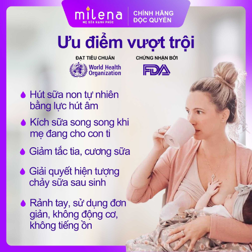 - Thay thế máy hút sữa trong 90% trường hợp, từ sau sinh đến khi đi làm.