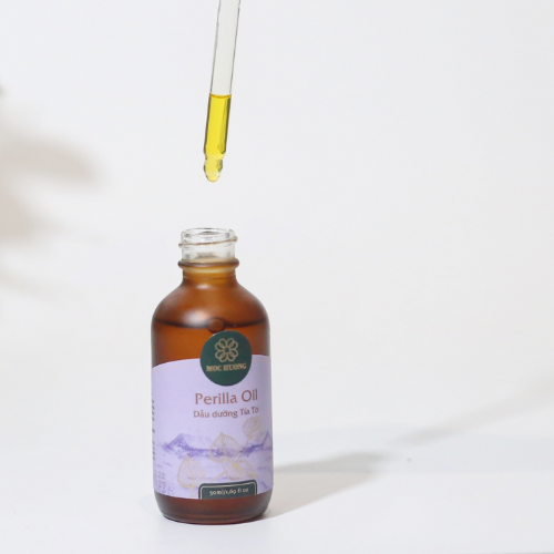 "Dầu dưỡng body Tía tô Dưỡng ẩm và khóa ẩm lâu dài, giúp da mềm mịn, ẩm mượt Góp phần làm sáng, đều màu da và cải thiện tình trạng thâm sạm"